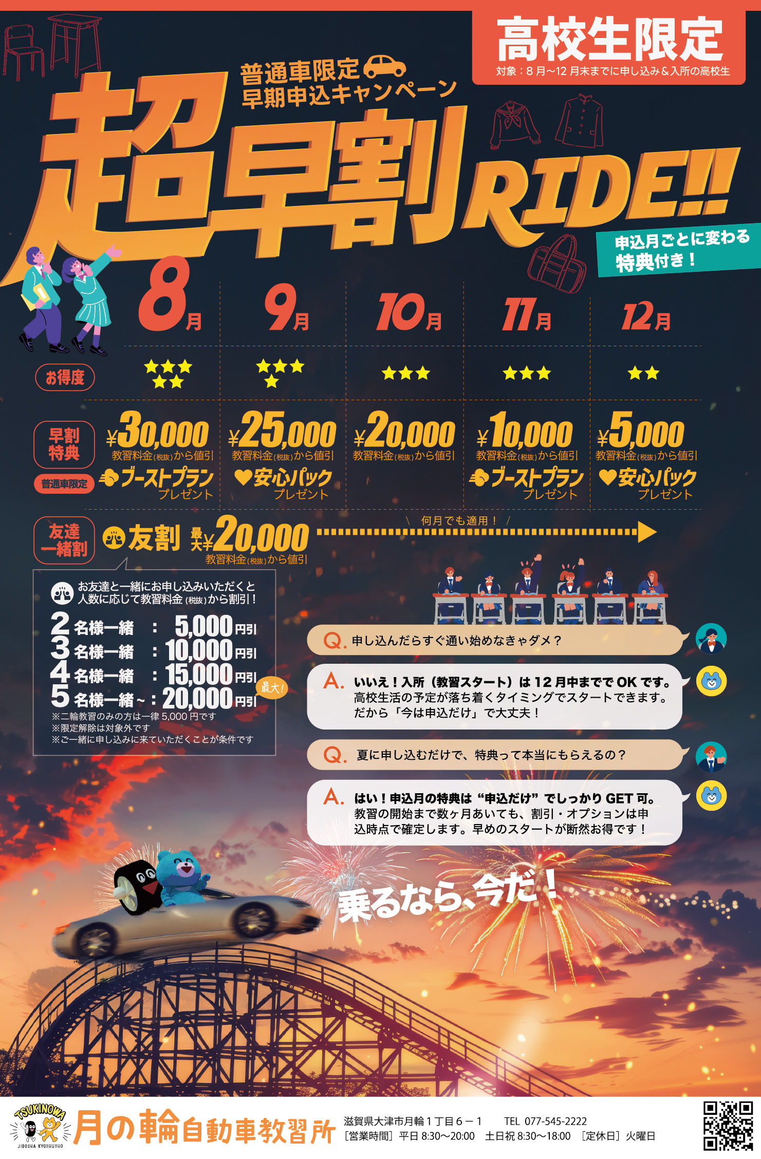 | フルタイムプラン (通常 22,000円) | 平日夜間(17時〜) 土日祝 も教習可能! |