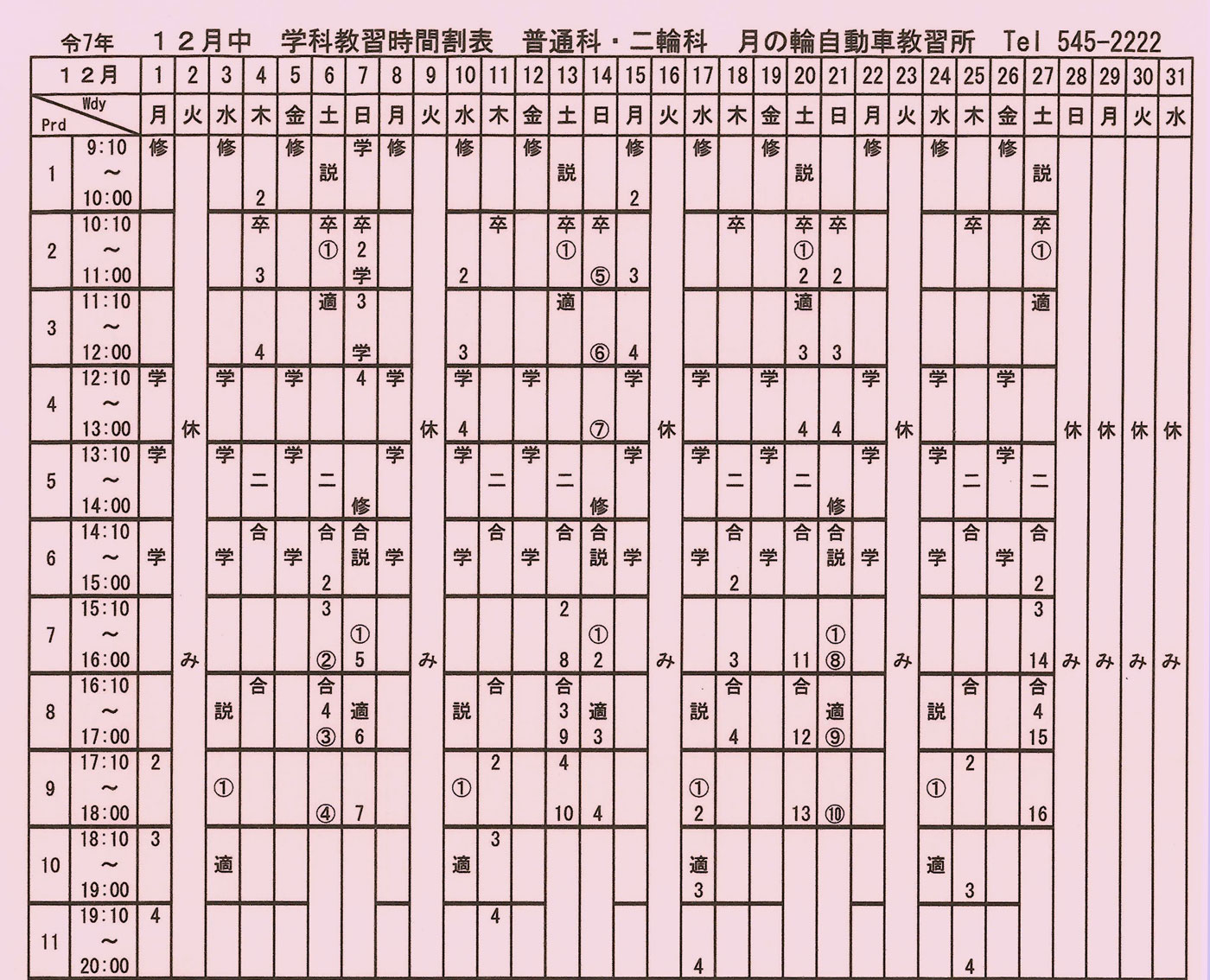 仮学科試験の実施日や、二段階の応急救護学科(2~4)についてはこちらの時間割表でご確認下さい